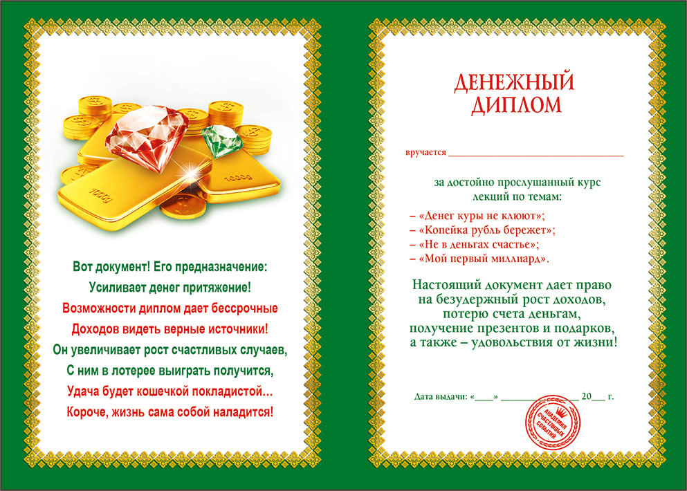 51.52.376 Диплом "Денежный" в твердом перепле...