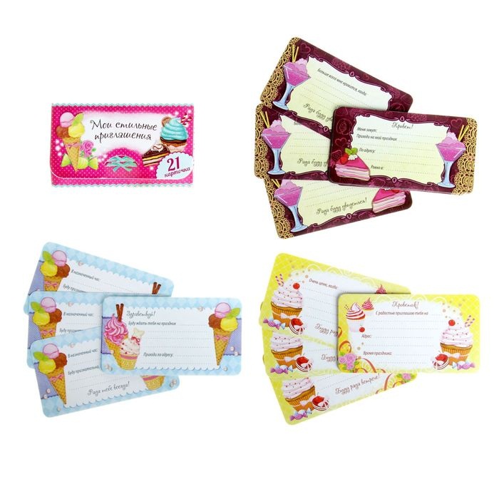 > 1009597 Приглашение малое 2-стороннее "Мои стильные приглашения" Размер 9 * 5 см.Рисунок ассорти