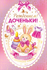 43.129 Открытка " С рождением доченьки!" Тисн...